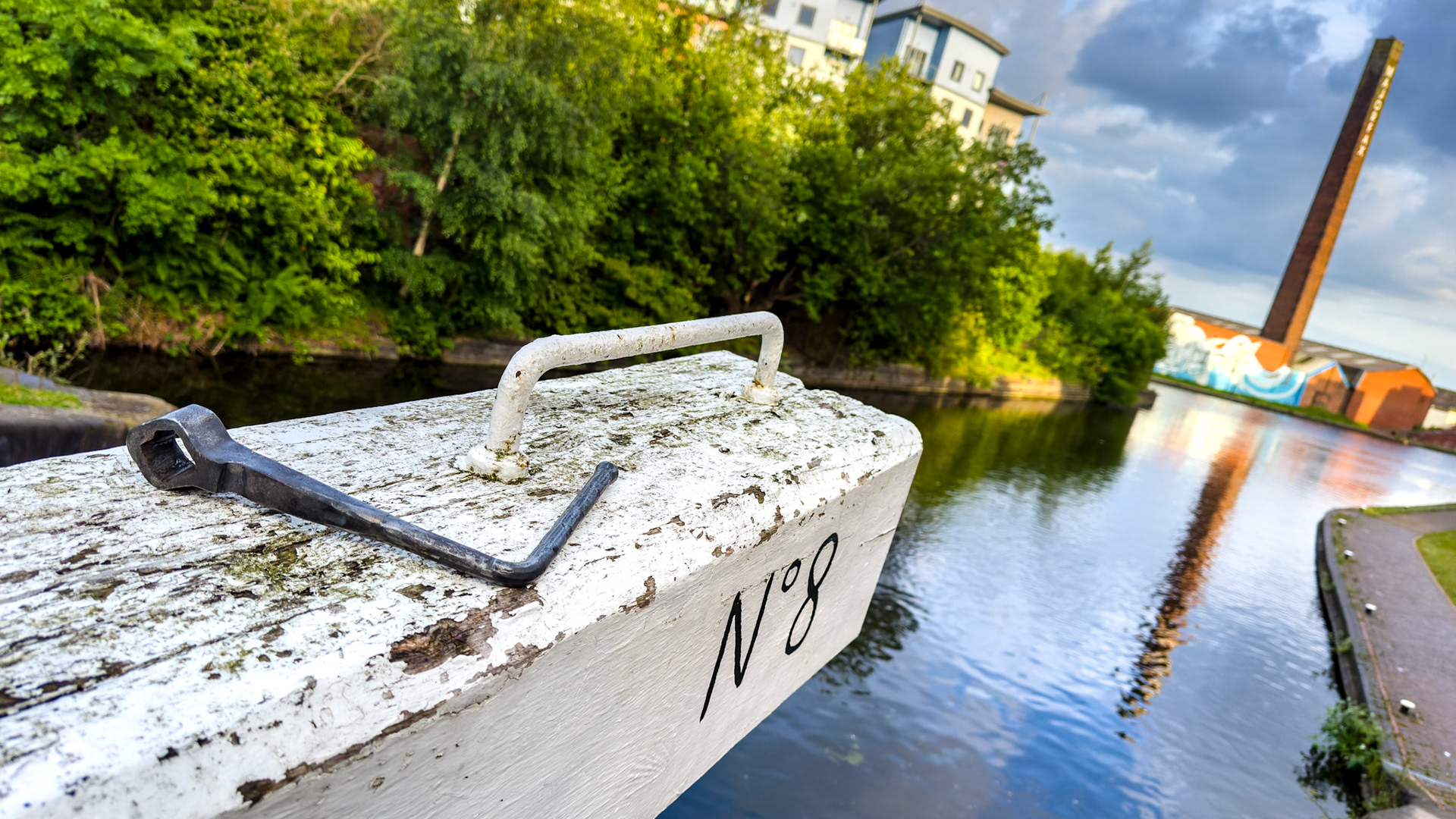NB Will Try moored up on the Stratford-upon-Avon canal with snowfall on the towpath